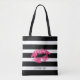 Tiras brancas e pretas simples e lábios rosa. Modelo de saco de tote personalizável