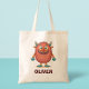 Esta bolsa de mão personalizada adorável apresenta um monstro fofo, feliz e colorido.