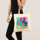 As mulheres Tote Bag têm cores vibrantes azuis, cor-de-rosa, aqua, roxo e amarelo.