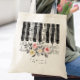 Bolsa Tote música piano rosas em folhagem cinza