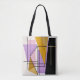 Esta bolsa de tote apresenta um design geométrico moderno e abstrato. A trabalho de arte consiste em intersetar linhas pretas sobre a composição de triângulos e trapezoides na lavanda pastel mole, ouro mutado e preto profundo. Essas formas se sobrepõem, criando um efeito em camadas que adiciona profundidade e contraste ao design geral. As precintas pretas complementam as linhas em negrito no padrão, fazer-as como um acessório na moda e versátil para uso diário. Perfeito para aqueles que apreciam arte minimalista e contemporânea, essa bolsa combina funcionalidade com um apelo estético impressionante.