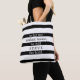 Um saco de tote Na moda e Inspiracional usando um padrão listrado preto e branco, este design apresenta um verso de Bíblia excelente. Na moda e chic, peça o seu hoje! Listras: AMBilustrações http://www.etsy.com/shop/AMBillustrations/