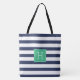 Bolsa Tote Na moda Marinho Blue Stripes e Monograma Verde