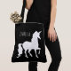 Sacola personalizada na moda moderna do divertimento da silhueta preto e branco do unicórnio. Escolha de dois tamanhos e comprimentos diferentes da correia. Personalize estes divertimento e unicórnio colorido na pia batismal branca em sua escolha da cor do fundo. Enegreça o fundo com unicórnio branco brilhante no centro. PERSONALIZE para mudar a cor-de-rosa, ao roxo ou à outra cor na parte dianteira e na parte traseira. Presente do divertimento para miúdos, adolescentes, e adolescentes que amam unicórnios e criaturas mágicas. Colorido, moderno e à moda.