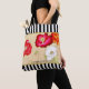Bolsa Tote Na moda Red Poppy Floral Black Stripes Com Nome