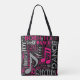 Dançar é sua paixão? Este saco de tote legal com uma palavra design de nuvem diz tudo. Algumas das palavras, intercaladas com notas musicais, são: respirar, ao vivo, amor, dança, ritmo e nascer para dançar. Esta versão apresenta tons de rosa, cinza e branco na cor de fundo de sua preferência. Procure ID277 para ver opções de cores adicionais e produtos correspondentes a este design.