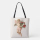 Bolsa Tote Natal Antigo, Anjo Vitoriano com Grinalda Floral