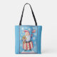 Bolsa Tote Natal fofo, Papai Noel patriótico com bandeira