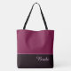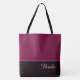 Esta linda bolsa tote fashion forward mostra a palavra "Noiva" em cor de texto Orquídea Quente sobre o mais profundo Cassis escuro com a parte superior da bolsa tote em Cassis personalizado. Tem muito espaço para texto personalizado. Gráficos e texto estão em ambos os lados desta bolsa tote. Alça preta. Personalize ainda mais ou compre como mostrado.