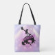 Bolsa tote Humorous Disco Bachelorette projetada para a equipe da noiva. Em belas cores gradientes de lavanda ao periélio e rosa com uma