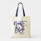 Bolsa Tote Noiva divertida e ousada em azul com caligrafia mo