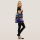 As damas de honra têm muito para carregar e esta bolsa elegante irá guardar tudo. Roxo, dourado, preto e aqua acentuam este lindo design que diz 'equipe da noiva' com o nome da dama de honra na frente, e os nomes dos noivos e a data do casamento nas costas tornarão esta bolsa uma lembrança para os anos vindouros. Todas as palavras são personalizáveis.
