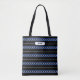 Bolsa Tote Nome de Monograma Moderno Quatrefoil Listras Preto