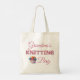 Esta é uma bolsa de mão fofa que pode ser usada para carregar o seu último projeto de tricô. A imagem apresenta um nome personalizável, um design fofo da palavra "tricô", e uma cesta de lã. Isso faria um ótimo presente personalizado para qualquer pessoa que ama tricô.
