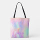 Bolsa Tote Nome holográfico púrpura cor-de-rosa Unicorn