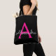 Bolsa Tote Nome Moderno do Monograma de Script Negra-Rosa-Que