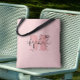 Crie um saco de tote personalizado acentuado com o seu primeiro nome em preto sobre um monograma cor-de-rosa escuro num fundo cor-de-rosa. Mais cores na nossa coleção.