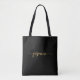 Bolsa de mão com monograma preto e dourado minimalista feminino delicado com nome personalizado. Este design apresenta seu primeiro nome em uma linda tipografia de assinatura com rabiscos (ou caligrafia) em fundo preto e dourado. Ótimo presente feminino para aniversário, casamento, Natal, festa de 16 anos, chá de noiva, despedida de solteira ou para formatura. É para a garota que gosta de coisas limpas e minimalistas.