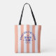 A bolsa de tote do Clube de Praia é a bolsa diária perfeita para sua viagem à praia. A cabana cor-de-rosa é riscada com uma letra azul vibrante "Toast On The shore". Personalize com os detalhes de sua viagem à praia... ano e destino na praia. Perfeito para uma família ou amigos, uma viagem de praia ou uma solteira de clube de praia ou como lembrança de uma viagem passada. Acessórios correspondentes disponíveis na torrada do Clube de Praia na Coleção de Stripe de Cabana Rosa Costeira.