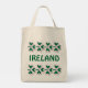 Folhas bonito de shamrock criadas de pequenos corações, com a palavra IRLANDA, fazem disto um presente útil para alguém irlandês, ou para qualquer pessoa com ligações ou interesses nesse país encantador. Esta bolsa forte segurará todas as suas compras.