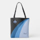Bolsa Tote Ondas de abstrato em tons azuis e flur de lis