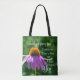 Uma bela frase inspiradora que tote bag retrata uma Echinacea roxa em flor e apresenta uma oração cristã a Deus, Senhor que rezamos para que os olhos vejam, ouvidos para ouvir e um coração para conhecê-lo.
