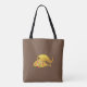 Belo e elegante trompa ouro de abundância sobre fundo castanho Tote Bag. O ouro da abundância tem aspecto metálico dourado e confete multicolorido.
