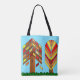 Esta bolsa tote tem um design art déco de árvores coloridas para o outono feito de várias formas em um campo azul.