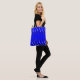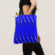 Este trabalho de arte incorpora padrões egípcios azuis e brancos que criam uma interação distinta contra um fundo azul brilhante, resultando em uma intensa e geometricamente revigorante design de sotaque de tote bag.