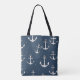 Bolsa Tote Padrão de Âncora Simples, Azul e Branca