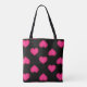 Esta bolsa de tote apresenta um padrão repetitivo de corações rosa-quentes de dois tons.
