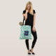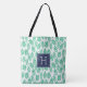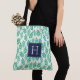 Bolsa Tote Padrão de Folhas Verdes e Monograma Azul