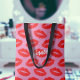 Bolsa Tote Padrão de Lábios de Kisses Red Lipstick rosa quent