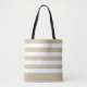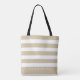 Padrão de listra bege e branco de soja da moda, bolsa tote. Personalize com nome e título da comitiva de noiva.