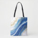 Bolsa Tote Padrão de mármore abstrato azul e Dourado