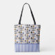 Mostre a sua paixão por cruzar com esta bela bolsa de tote com um padrão moderno de viagem com navios de cruzeiro, coquetéis, câmeras, chapéus, óculos de sol, binóculos, listras azuis do mar - e muito mais! Altere facilmente o texto para torná-lo pessoal ou sinta-se à vontade para o eliminar. Veja toda a coleção de incríveis ideias para amantes de cruzeiro! © The Pattern Press.
