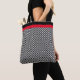 Padrão de xadrez preto e branco com Tote Bag de banda vermelha.