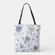 Bolsa Tote Padrão Floral de Aquarela Violeta Azul Monograma