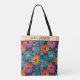 Bolsa Tote Padrão Floral Retro Vibrante com Praças Teais
