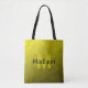 Padrão de malha geométrica amarelo ombre monograma Tote Bag. Personalize com seu nome e inicial personalizados. Padrão geométrico amarelo de gradiente ombre. Malha geométrica triangular com gradiente preto-negro-preto-amarelo-claro.