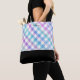 Saco de mão com padrão xadrez rosa e azul iridescente com monograma
