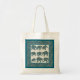 Um Saco de Tote de Orçamento Chic, com silhuetas elefantes, cheio de um padrão de Paisley azul escuro e burgundy, em um fundo bege, cercado por uma Borda Paisley. Parte da coleção Posh & Painterly 'Heffalumps'.