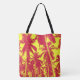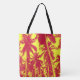 A silhueta das Palmeiras tropicais cria um saco de design funk para feriados exóticos ou praia. Design de Palmeiras Vermelhas e Amarelas
