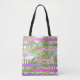 Bolsa Tote Palmeiras tropicais, listras violetas rosa moderna