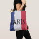 Ilustração de design de texto de Paris com decoração em Torre Eiffel sobre fundo de bandeira francesa de moagem