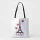 Bolsa Tote Paris, Torre Eiffel e Balões do Coração Vermelho
