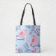 Bolsa Tote Pássaro rosa giro em monograma personalizado azul