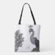 Um belo pavão de aquarela pintado à mão num saco de tote preto e branco rico! Personalizar o monograma ou eliminar