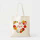 Uma coroa colorida de flores e de folhas-noiva. Modelo de saco de tote personalizável
