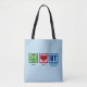 Bolsa de Amor pela Paz para um terapeuta ocupacional. Um sinal de paz, coração e T escrito em azul. Personalize com sua prática ou nome de terapia ocupacional.
